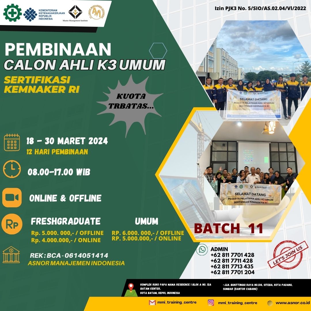 Categories: Administrator, AHLI K3, AHLI K3 UMUM, AK3 Muda, AK3U, AK3U BATAM, AK3U BNSP, AK3U MEI, Auditor, Auditor SMK3, BATAM, BNSP, K3, k3 aceh, K3 BATAM, k3 bintan, k3 kalimantan, k3 karimun, k3 pekanbaru, k3 tanjung pinang, KEMENAKER, Konsultan, SMK3, TRAINING