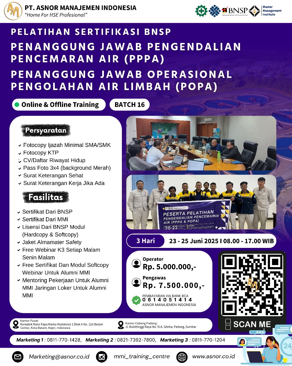 PPPA – POPA (Penanggung Jawab Pengendalian Pencemaran Air Level Pengawas & Operasional) Training – BNSP Certificate – JUNI 2025